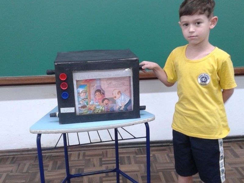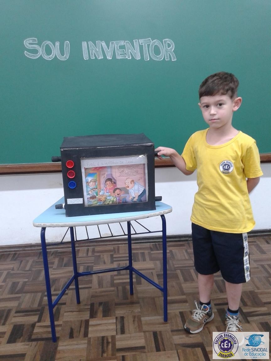 Esse projeto iniciou em agosto e está em andamento. Exploramos a letra inicial de cada invenção como por exemplo: A de Alfabeto, B de Bambolê, F de Foguete, H de Harpa, K de Karaokê, M de Microscópio, U de Urso de Pelúcia. Assim como a observação de imagens de época que retrataram algumas invenções e a criação de seus próprios inventos.