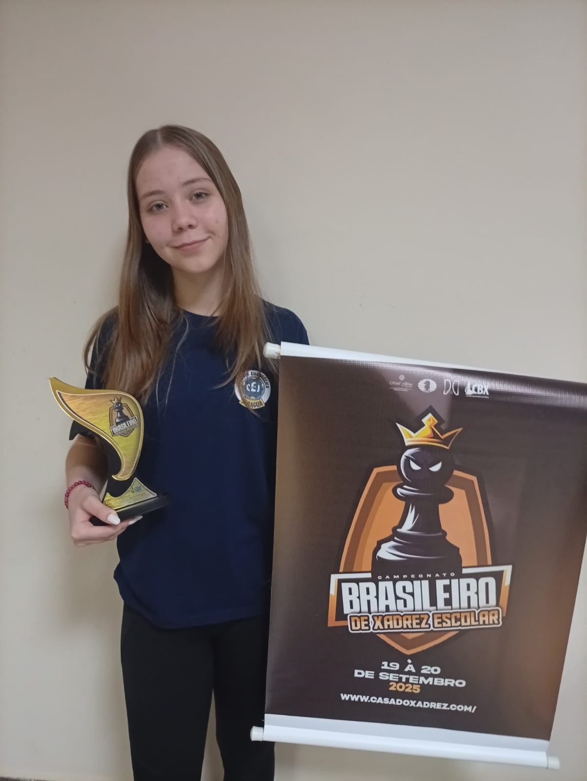 A aluna enxadrista Nicole Nunes teve um excelente desempenho, garantindo o 3° lugar sub 14 feminino.
