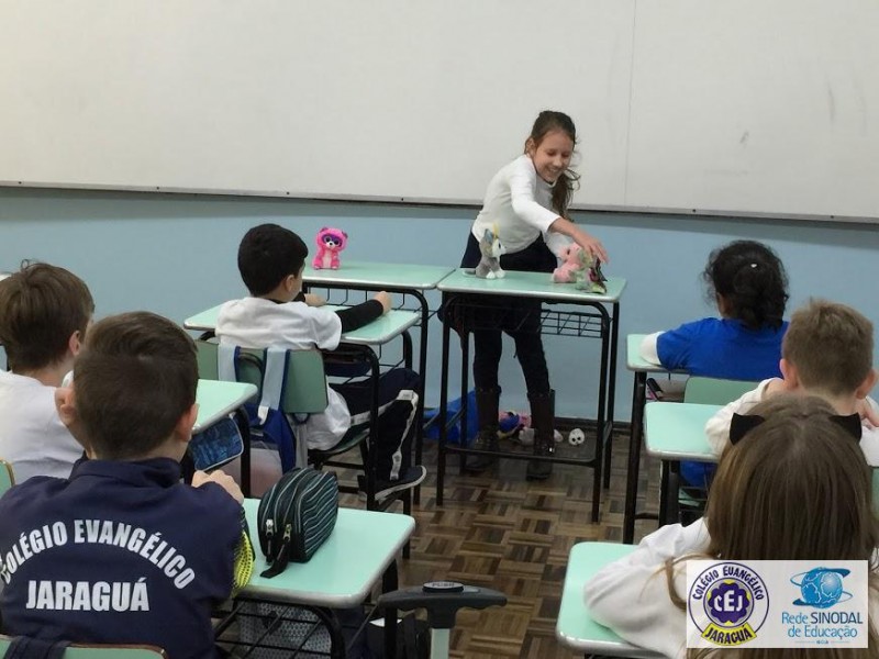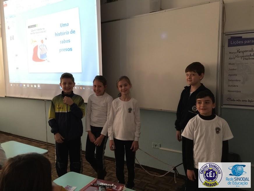 Após a leitura do texto, cada aluno preparou uma apresentação do texto lido. O objetivo era que o aluno compreendesse e transmitisse a mensagem, interpretando o que foi lido de forma criativa. Para isso poderiam utilizar fantoches, teatro de sombras, história de varal, cenário em caixa de sapatos, bonecos, palitos com personagens, etc. Materiais que deveriam ser selecionados e trazidos no retorno das férias escolares. Pois na primeira semana iniciaram as apresentações, de forma aleatória.
