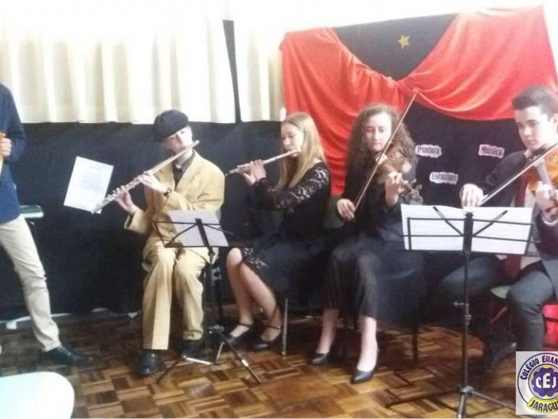 Para finalizar as aulas de Literatura do 3º bimestre, vivenciar e sentir a arte, os alunos do 2ºano do Ensino Médio simularam, com elegância, criatividade, dedicação e muito conteúdo, a “Semana de Arte Moderna de 1922”. Depois do estudo sobre as “Vanguardas Europeias” e o “Modernismo brasileiro”, os alunos pesquisaram alguns participantes do evento, produziram telas, esculturas e caricaturas modernistas, ensaiaram declamações e músicas, organizaram o ambiente da época e realizaram as apresentações, interpretando os artistas com figurinos, acessórios e verbalização da biografia, características artísticas e de uma obra. Assim, a professora colocou em prática o conteúdo da disciplina, incitou a expressão oral e corporal, a criatividade, a pesquisa e o trabalho coletivo e individual.